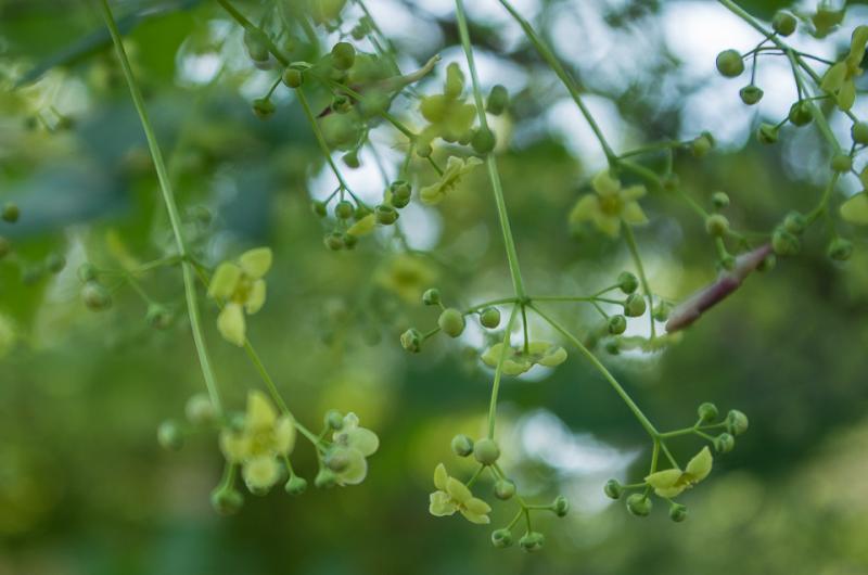 Ich fand am Wochenende diesen Euonymus spektakulär unspektakulär - das ist doch E. planipes, bei dem die Blüten so runterhängen, ja?