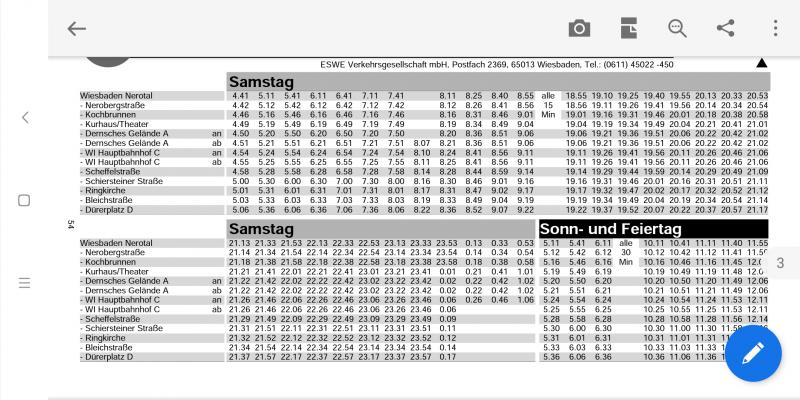 Wem Samstag Abend der Weg zum Dernschen Gelände, um die 5 zu erreichen, zu weit ist, kann an der Taunusstraße in die 1 einsteigen. Das klappt zur vollen Stunde gut mit dem Umsteigen. Die Haltestelle heißt Jawlenskystraße und liegt auf dem Fahrplan zwischen Nerobergstr und Kochbrunnen.