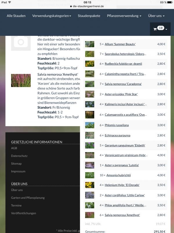 Jetzt habe ich aber doch noch eine Frage. Beim sitzbereich möchte ich vor allem den linken randbereich und auch rechts und mittendrin... Äh ja... Also so eingestreut noch bepflanzen und dachte an etwas mehr Duftpflanzen und auch ein bisschen mehr Knall in der Farbe, zumindest zeitweise. Da das keine riesigen Flächen sind, wollte ich dennoch Abwechslung, also kleine Stückzahlen, zum Teil dann eben auch nur eine Pflanze. Hier mal die Auswahl. Ich würde schon ein bisschen sortieren und die ersten fünf zB zusammen setzen und den Rest verteilen... Was meint ihr?