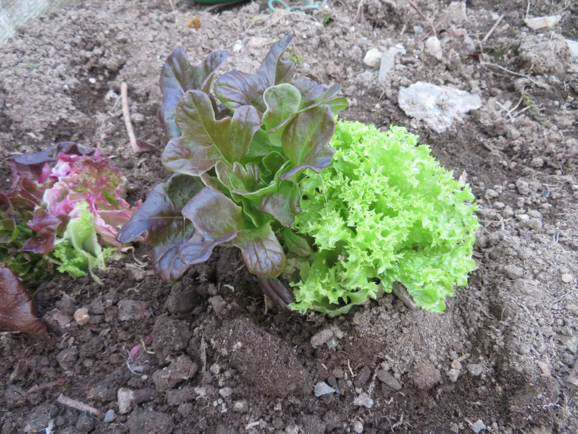 Über die Wintermonate habe ich Salatpflanzen vom Herbst und ein paar Rosmarinstöcke die im Vorfrühling zu blühen anfangen.