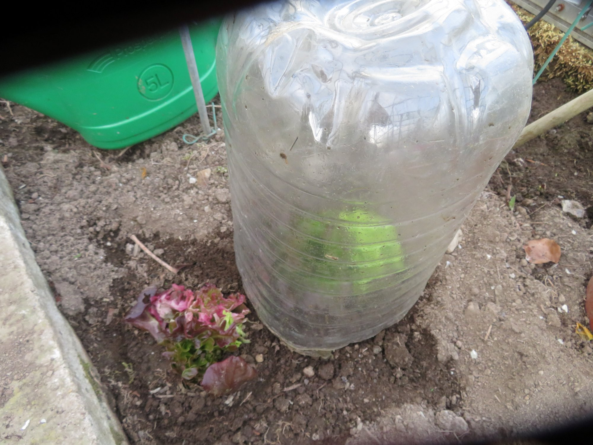 Mein "Bodendsee-Faktor" besteht aus durchsichtigen Kunstoff-Schläuchen die mit Wasser gefüllt an der Seite im innern des Gewächshauses hängen. Die nehmen tagsüber die Wärme über die Sonne auf und geben sie nachts ab und puffern damit die Temperaturschwankungen ab.