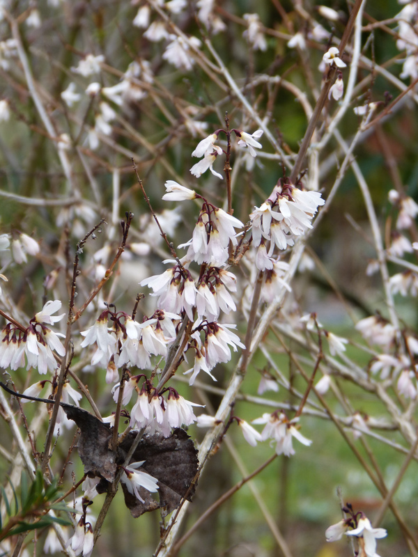 Abeliophyllum distichum blüht dank des ausgefallenen Winters so reich, wie lange nicht mehr.