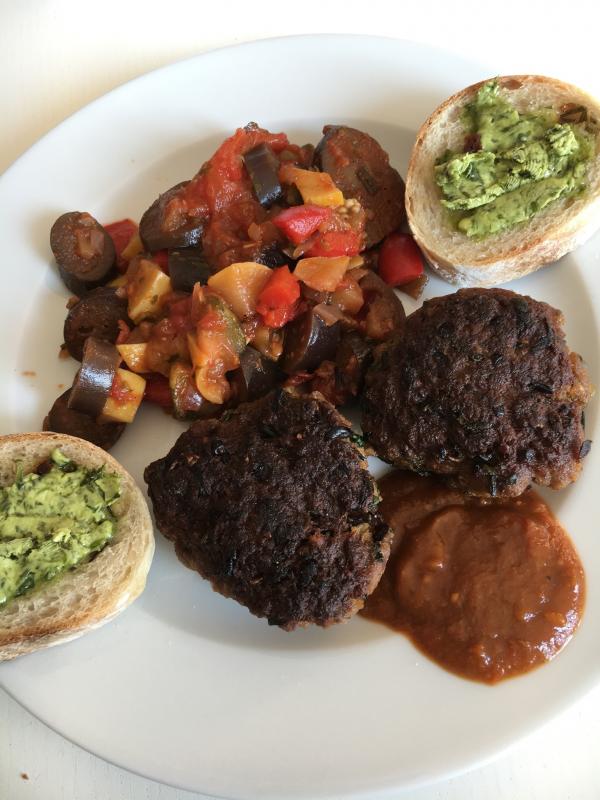 heute gabs Fleischküchle mit Ratatouille und Baguette