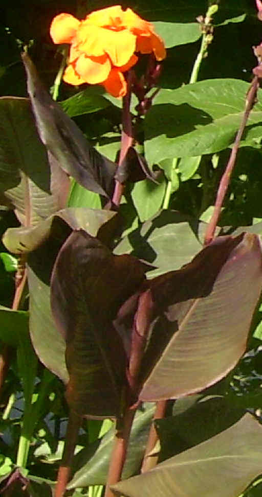 Das hier ist die rotlaubige Canna, die Farbe ist im Frühling und bei weniger Sonne viel intensiver!