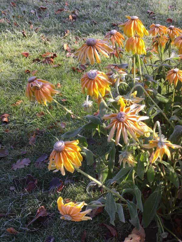 Ich hab heute die einjährigen Rudbeckien gerodet. Jetzt überlege ich, ob ich den „Pflanzkreis“ um die in der Mitte stehende Novalis jetzt gleich vergrößere, oder bis zum Frühjahr damit warte. Narzissenzwiebeln stecken da schon drin, wurden heute noch durch weitere an den frei werdenden Stellen ergänzt.