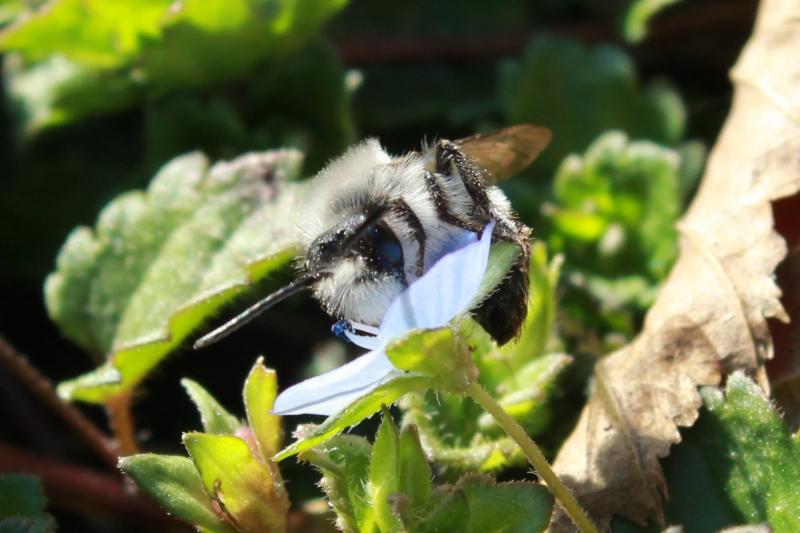 ich steh noch ziemlich am Anfang meiner Wildbienenbeobachterkarriere - vor allem brauche ich ein besseres Kameraobjektiv, so scheu und flink wie die oft sind. Habe kein anständiges wirklich scharfes Foto hingekriegt. Vielleicht hat trotzdem jemand eine Idee, was das für eine Wildbiene sein könnte. Sie hat gezielt nur Ehrenpreisblüten angeflogen, aber eine Blaue Ehrenpreis Sandbiene (Andrena viridescens) ist es glaube ich nicht.