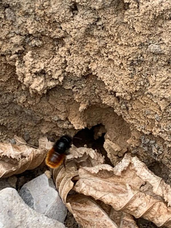Gestern haben wir eine Bienen- oder Hummelkolonie entdeckt. Einerseits freuen wir uns, andererseits wollten wir an der Stelle nächste Woche mit dem Bau einer Trockenmauer starten. Wir haben einen sehr lehmigen, im Winter fast tonigen Boden, das Loch haben die Insekten am Fuße der Mauer gebaut. Wisst um welchen Freund es sich handelt? Über Google habe ich mehrere interessante Webseiten gefunden, aber ein sicheres Ergebnis zu meiner Frage nicht.