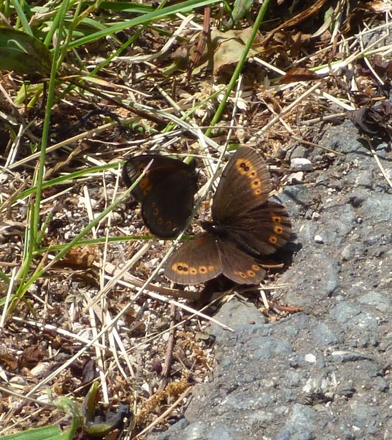 Bei einem Spaziergang neben einer moorigen Wiese ist mir dieses Pärchen Mohrenfalter eine Zeit lang voraus geflogen.