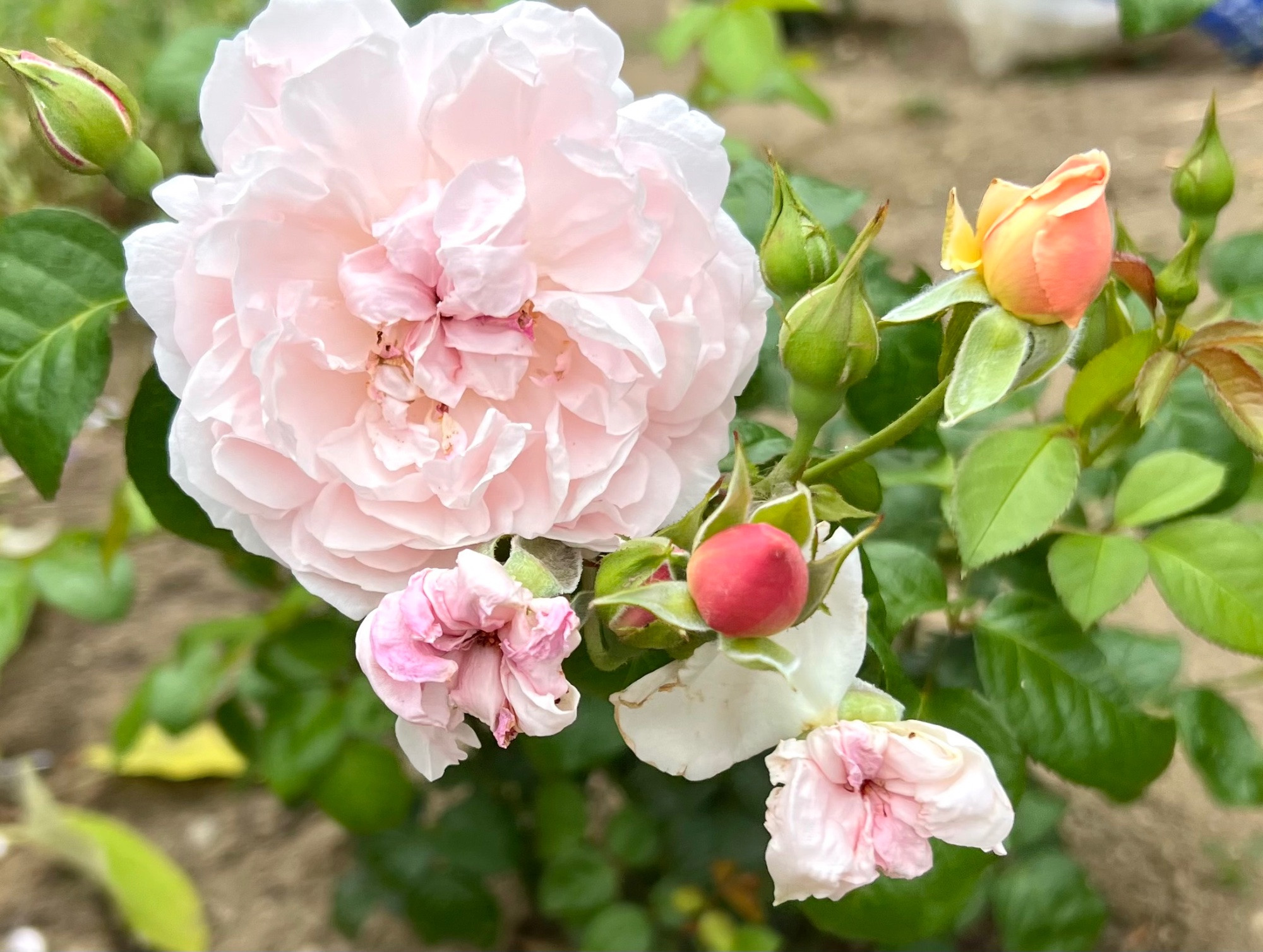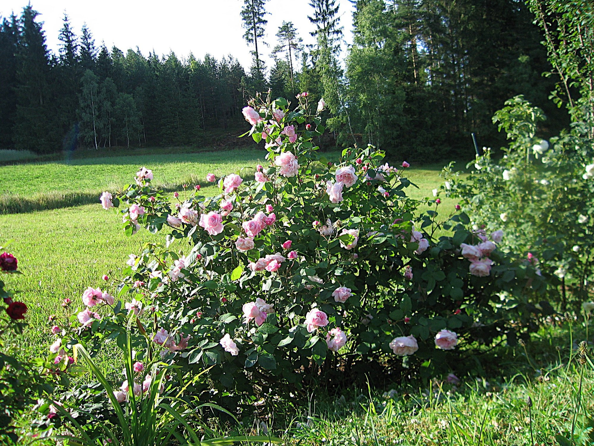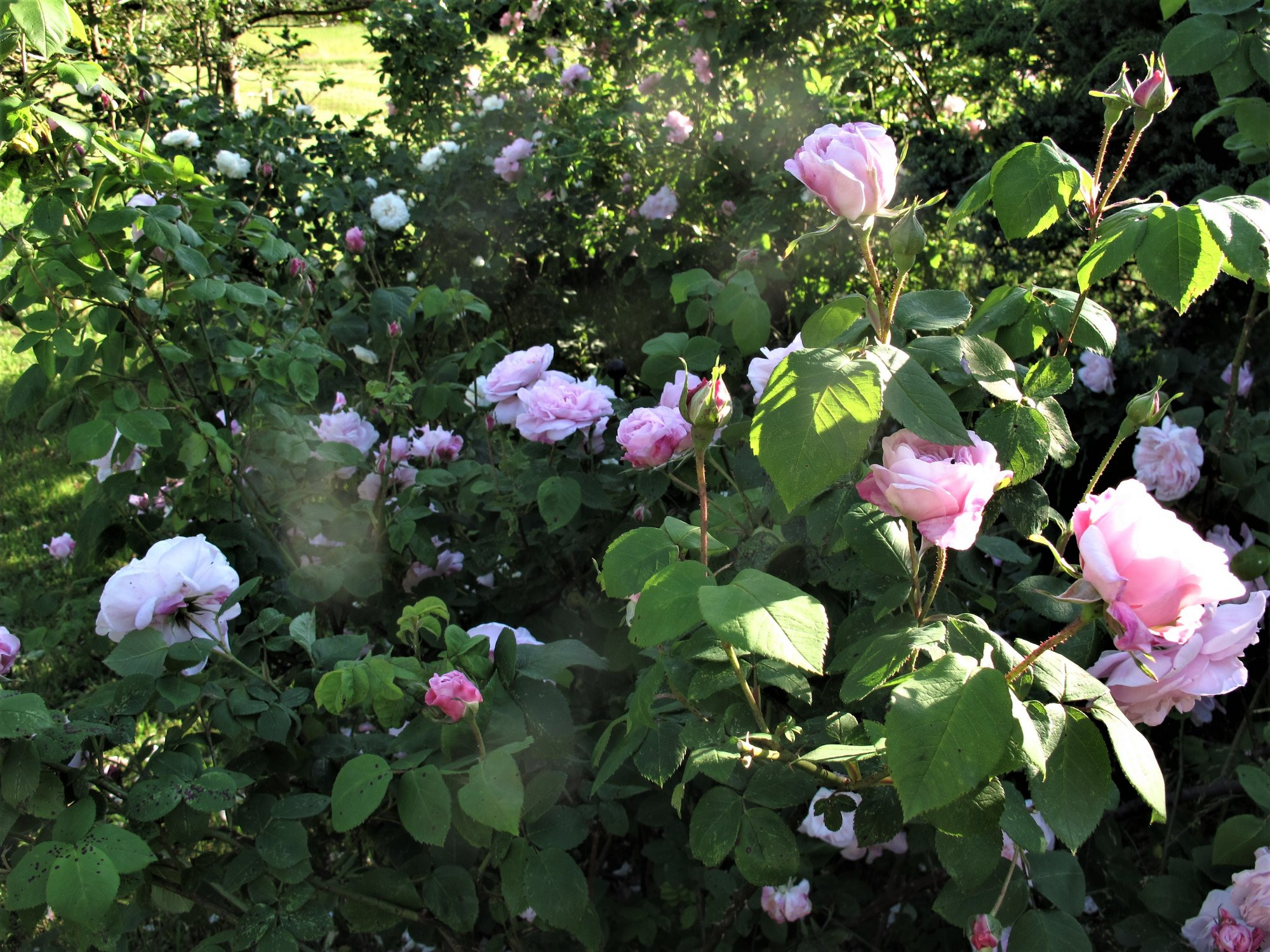 Sie hat eher wenig Stacheln, duftet dezent und ist an dem Standort etwa 1 m hoch. Wuchsform sehr buschig.