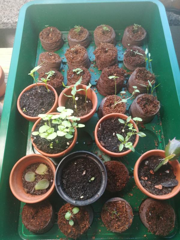 Und hier sind die, die bald pikiert werden sollen. (Die in den 8 kleineren Töpfen)Teil 1.