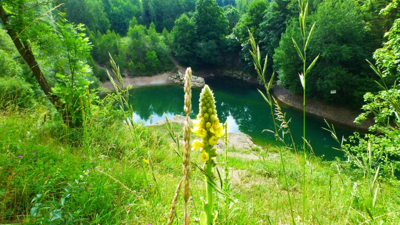 Am blauen See bei Rübeland die Kleinblütige Königskerze (Verbascum thapsus)
