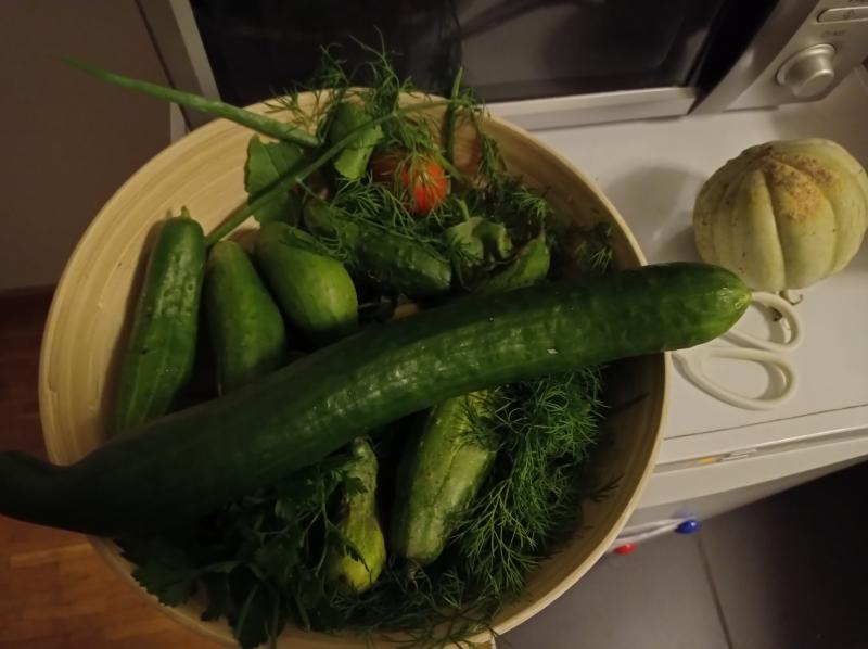 Also langsam werde ich baff. Noch im Frühsommer über ein schlechtes Gurkenjahr gejammert, dann wurde es aber immer besser. Das Merkwürdige ist aber wie lange es schon anhält. Hier die aktuelle Gurkenernte von heute. Alles Freiland, Gewächshaus haben wir auch nicht. Reife und gute Gurken im Oktober. :o