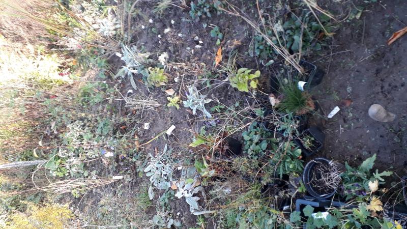 Meine matschig gewordenen Paprika- und Auberginenpflanzen abgeschnitten und einen Teil der Süßkartoffeln geerntet.