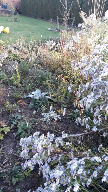 Ich pflanze gerade weiter meinen Garten voll, jetzt ist gerade die "Blickschneise" in der Mitte dran. Da stehen nur Stauden, maximal 70 cm hoch, damit ich von oben aus dem Wohnzimmer den freien Blick auf die Prunus subhirtella Autumnalis am Ende des Gartens behalte.