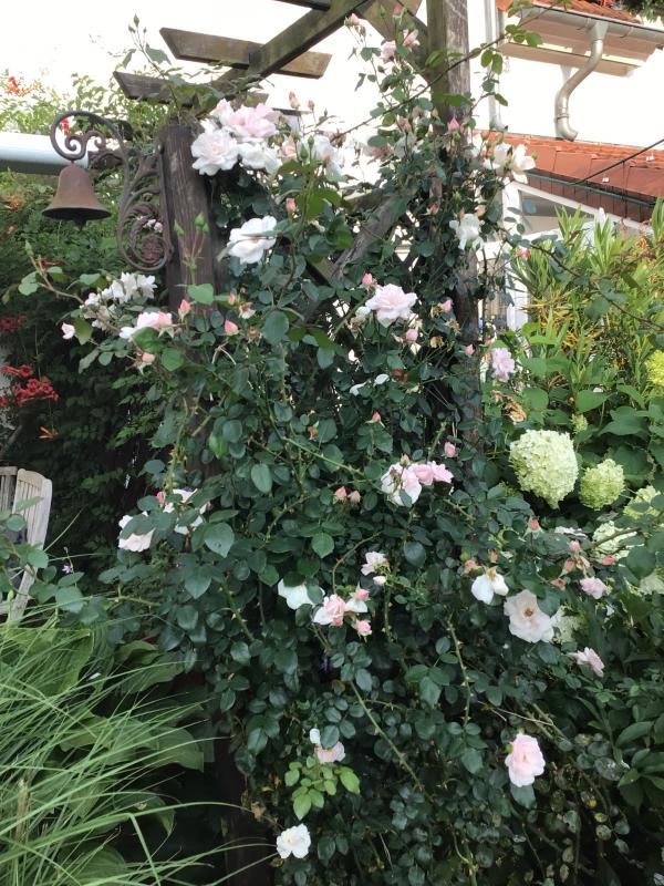Meine New Dawn ist nicht so gut aus dem Winter gekommen. Mehrere braune und sehr dünne Triebe. Trotzdem hatte sie viele Blüten.