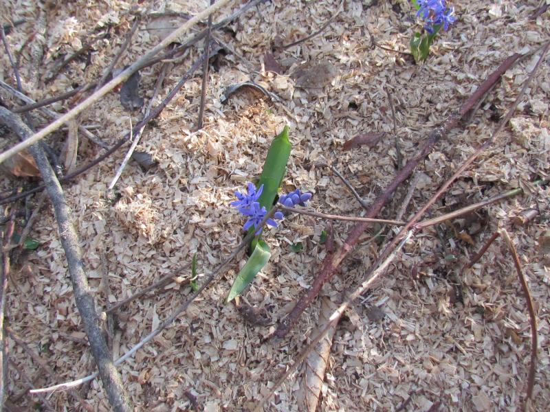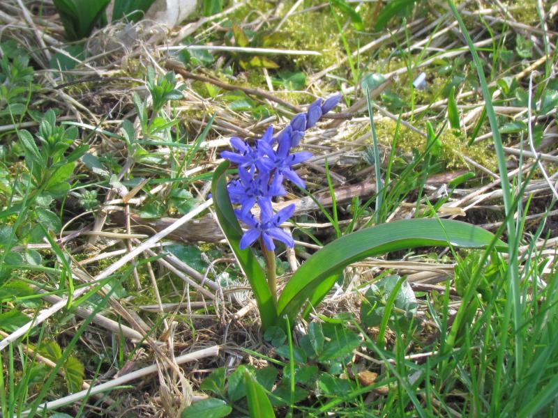 Irgendein gelber Grasbusch mit Scilla daneben, keine Ahnung was es ist. Könnte man aber im Garten bspw. mit Carex `Everillo´ nachbauen.