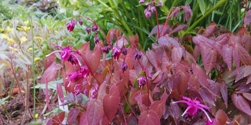 Bei Epimedien ist der Laubaustrieb ganz toll gefärbt. Im Verlaufe der Zeit werden die Blätter aber grün. E. grandiflorum verlieren die Blätter im Winter, andere E. sind wintergrün, manche färben ihre Blätter im Winter rot. Das hat auch seinen Reiz.