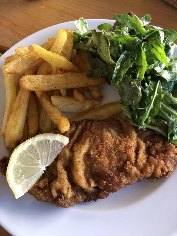 Und heute Wiener Schnitzel mit selbstgemachten Pommes und Gartensalat :P