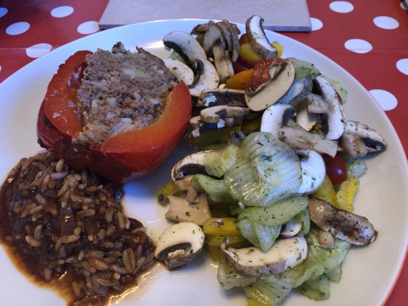 Zurück zum Thema: Gestern gab es Cordon bleu mit einem sehr bunten Kartoffelsalat (angereichert mit Radieschen, Lollo Rosso, Gurken und jeder Menge frischen Kräutern).