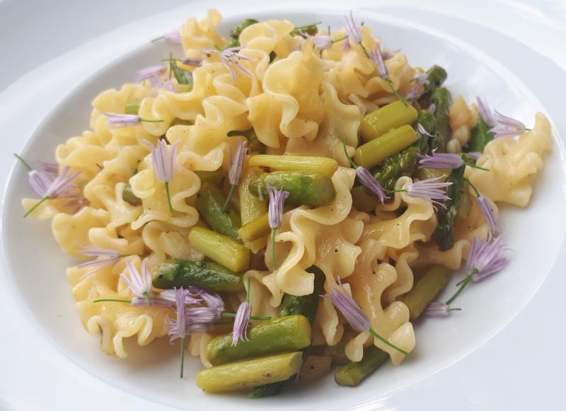 Spirelli mit Gartenspinat und getrockneten Austernpilzen