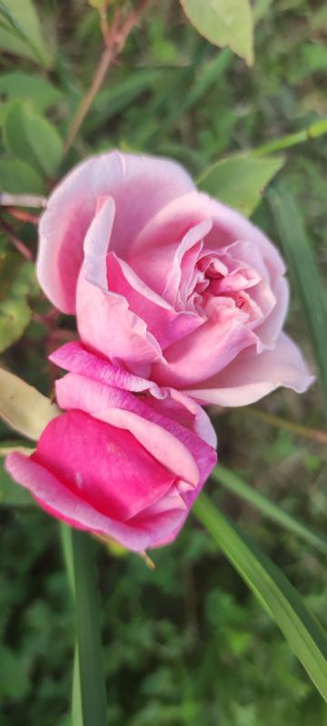 Vielleicht könnt Ihr Euch noch daran erinnern, dass meine Comtesse de Noghera im letzten Jahr basisnah einen Langtrieb geschoben hat, welcher jetzt über 2 Meter lang ist. Der hat natürlich die Saftwaage des Strauchs total aus dem Konzept gebracht. Der meiste Saft geht in den Langtrieb, wärend sich die restlichen Triebe der Rose eher vergeblich abmühen, ordentlich in die Gänge zu kommen und nur noch wenige Knospen schieben. Der Langtrieb wird in Kürze an der Spitze blühen und ist in der Höhe schlecht zu photographieren.