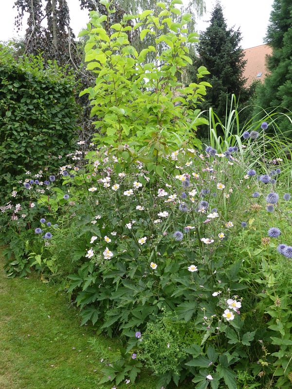 Und hier wollte die Herbstanemonen zeitweilig gar nicht mehr, irgendwann war ihnen der schwere Boden wohl immer zu nass. In den Anfangsjahren ging es hier noch gut, da haben die Fröste den Boden wohl aufgelockert, nach rund 20 hoffnungslosen Jahren schafft es jetzt dagegen anscheinend die sommerliche Dürre.