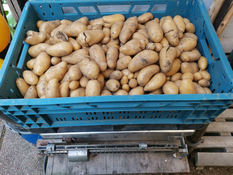 Bilderbuchknollen und wie gewünscht auch viele kleine Knollen dabei. Eigentlich perfekt. Das 2 mal gießen hat sich rentiert. Gedüngt wurde nicht. 26,8kg waren es.