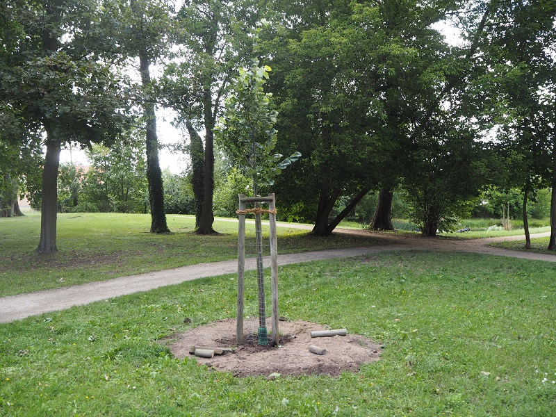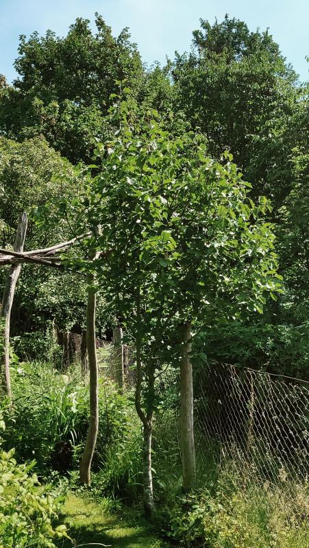 Letztes Jahr war Madame mit einer Freundin Mitte Juli in Dresden und kam mit einer Lindenblüte zurück und schwärmte vom Duft dieses Baumes. Es war eine Silberlinde. Ein befreundeter Landschaftsarchitekt kam umgehend und suchte im Park einen Pflanzplatz und am 3. August stand der Baum.