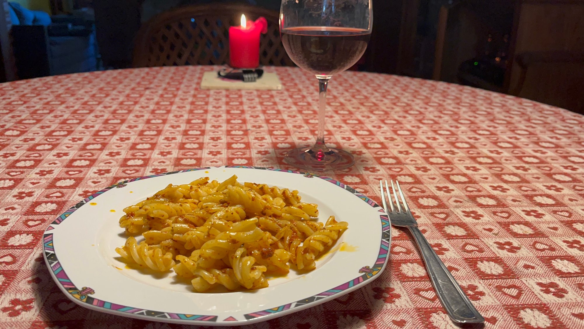 Vorspeise drei verschiedene Kirschtomaten, Hauptgericht Fusilloni mit Pesto rosso zur "Petite Révolution"