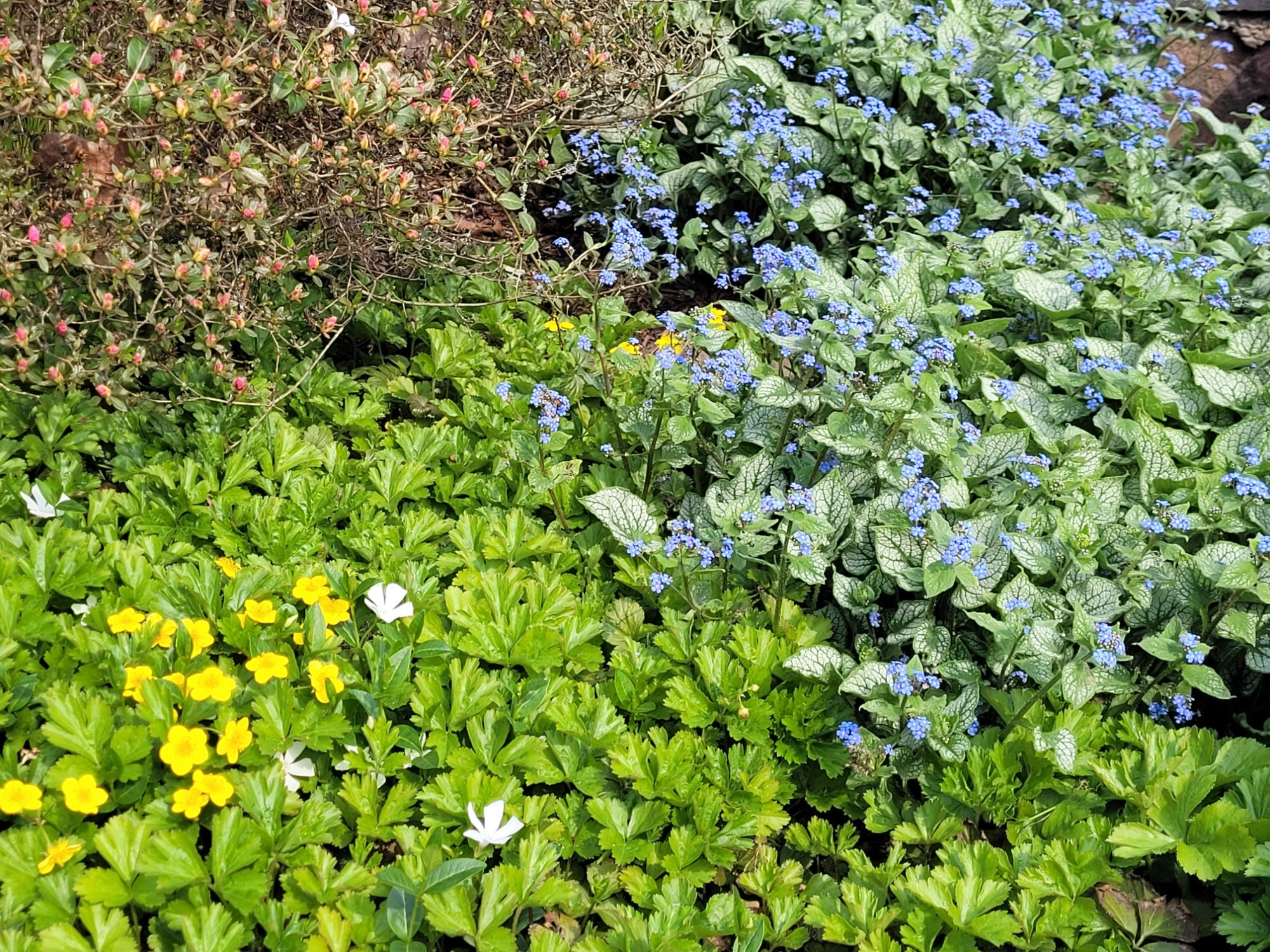 Vinca Minor, Waldsteinia und Brunnera 'Jack Frost'