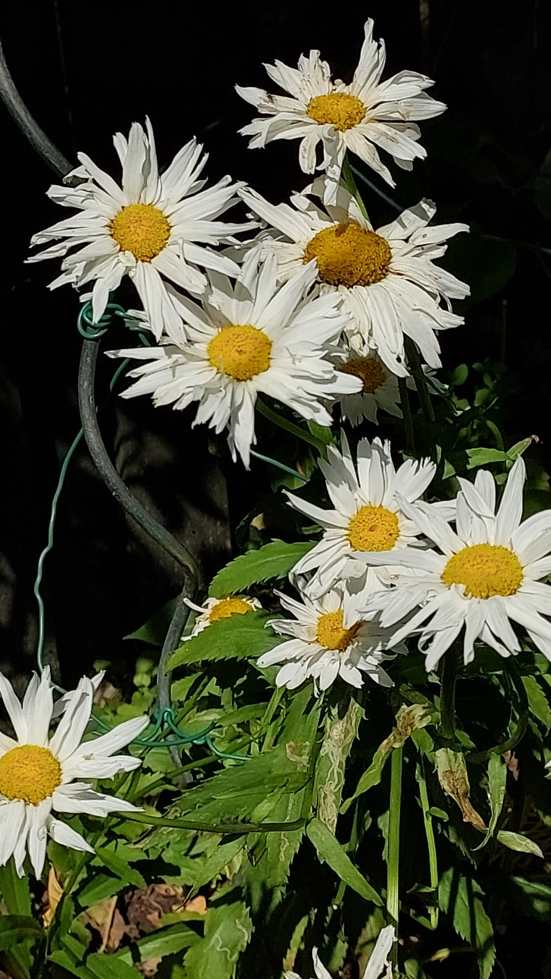 Leucanthemum. An einer Staude einfache und gefranselte, doppelte Blüten.