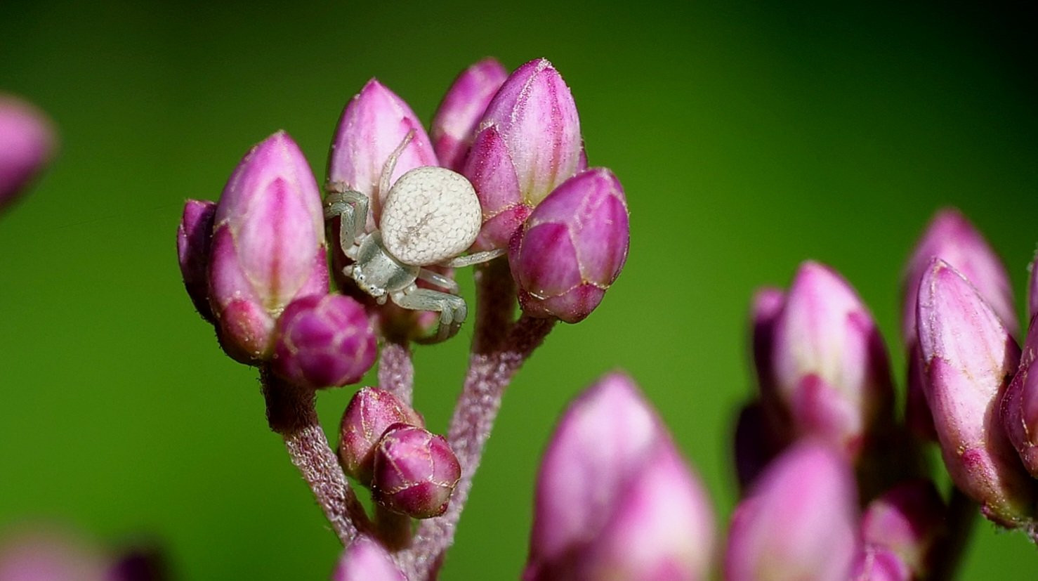 Eupatorium cannabinum fotografiert und auf den zweiten Blick diese winzige Spinne (Krabbenspinne?) entdeckt.