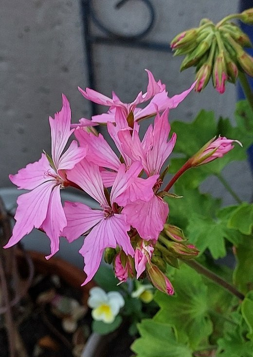 2 aparte Pelargonien und der weisse Staudenclematis hat eine Nachblüte.