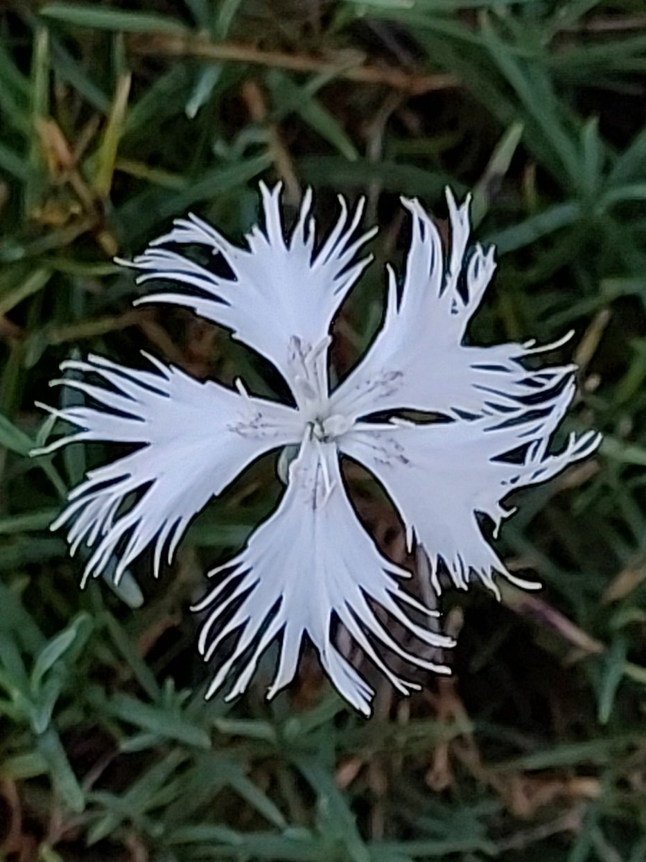 Auch eine zarte Dianthus, die Federnelke. Gurke und an einer Fuchsienblüte gibt es ein marmoriertes Muster