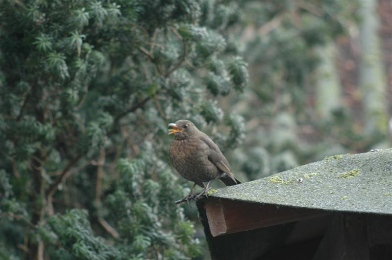 Hier noch ein paar Bilder was sich zur Zeit hier in meiner zum Futterhäuschen umfunktionierten Gartenlaube tummelt.....Ein Amselmacho!