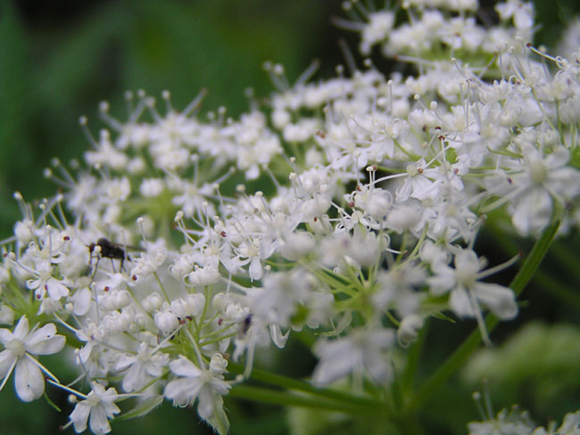 Achja, eine weiße Blüte für den Schatten: Die Süssdolde! Schmeckt außerdem nach Lakritze, eine wunderbare Pflanzen also. Ihr Laub ist feingefiedert und in Kontrast zu Hosta wunderschön.