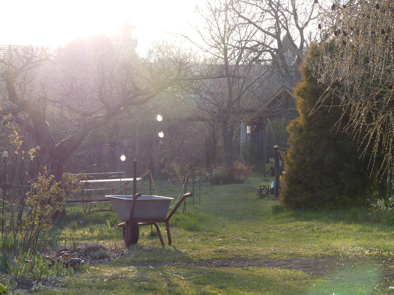 Inzwischen explodiert das Grün förmlich. Und die Kirschen blühen. :)