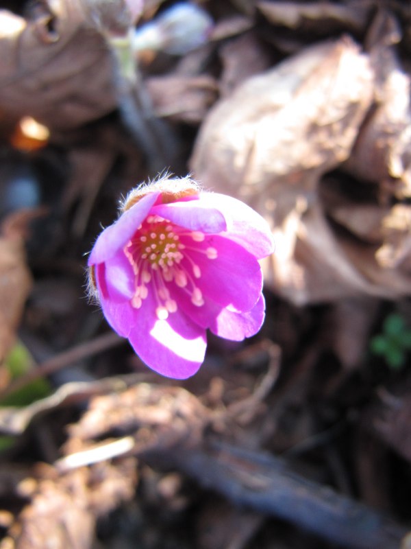 Zerfetzte Blüten werden bestimmt von Fliegern verursacht. Abgeraspelte oder ausgefressene Blüten liegen häufig an Raupen (siehe Beitrag 715). An diesen armen Relikten ist keinerlei Hinweis auf den Übeltäter zu finden. An meinen schneckengeraspelten Pflanzen ziert spärlich der silbrige Pfad um die Hepatica herum.Ich wollte so gerne ein bisschen protzen mit einem Bild meines leuchtend magentafarbenen Hepatica mit Japonica-Anteilen. Die Knospenanlagen sahen sehr vielversprechend aus. Aber nichts ist: Irgendetwas (Schleimer?) hat alle abgeraspelt.Dafür zeigt sich mal wieder, wie schön es selbst junge Pflanzen im Zweitgarten finden.