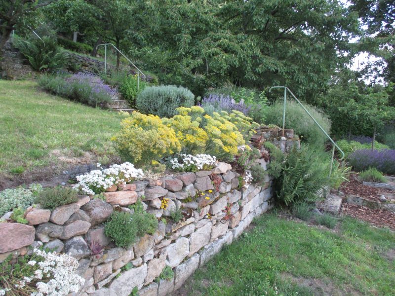 Sehr zufrieden bin ich auch mit dieser Bepflanzung der Mauerkrone.Alyssum markgrafii und Sedum.