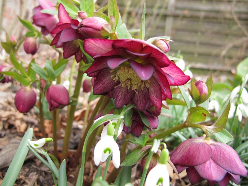 "Phoebe" und "Schmetterlingsrüsche" von Peters sind meine ältesten Hellebori (gekauft 2012)