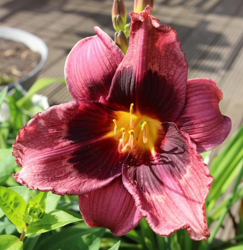 Dieser Sämling hat mich heute morgen mal wieder, wie schon in den Jahren davor bei meinem Gartengang gestoppt. Ich überlege schon lange, ob ich diese kleinblütige nicht mal endlich registrieren lassen sollte, aber immer wieder beeinträchtigt mich die geringe Knospenanzahl (6-8), die mäßige Verzweigung (2-3) und meine Einschätzung, dass es schon einige in dieser Farbgebung gibt dabei.