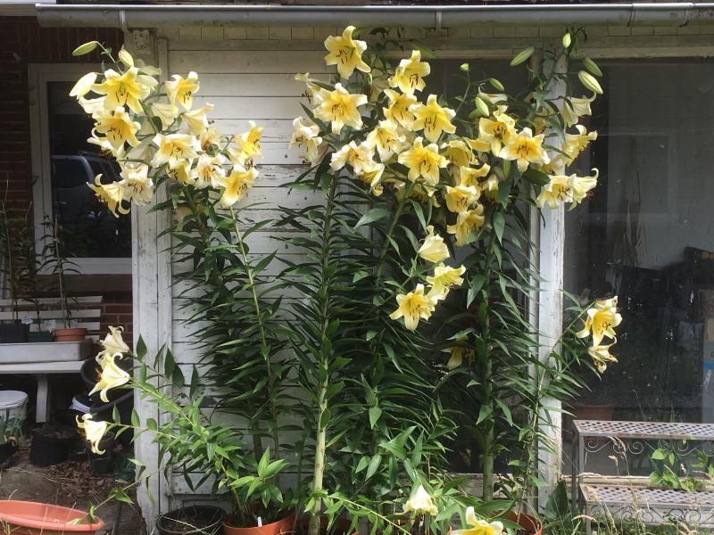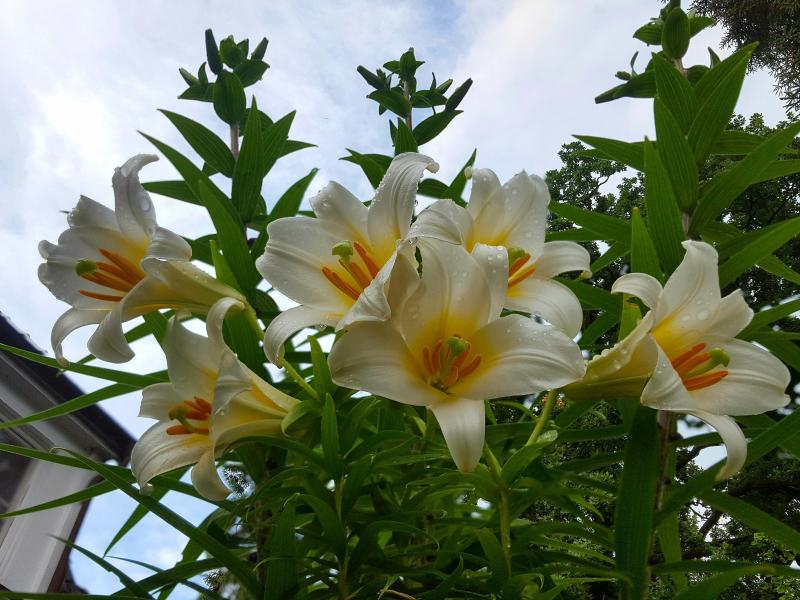 Meine Baumlilien - dieses Jahr bis zur Dachrinne.