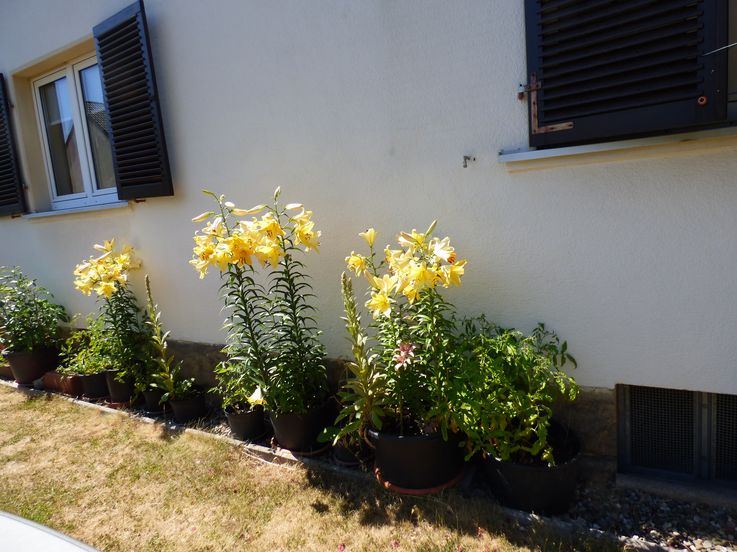 Die Tomaten waren halt bei mir sehr spät dran und die Lilien sind dieses Jahr so groß das dei Tomaten keine extra Stützen brauchen.