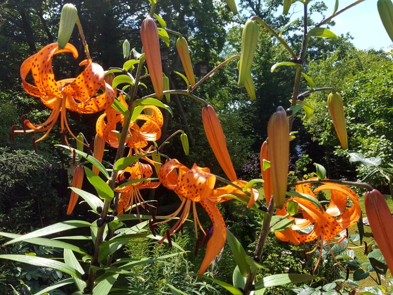 Leuchtendes Orange mit schwarzen Punkten - Tigerlilly blüht.