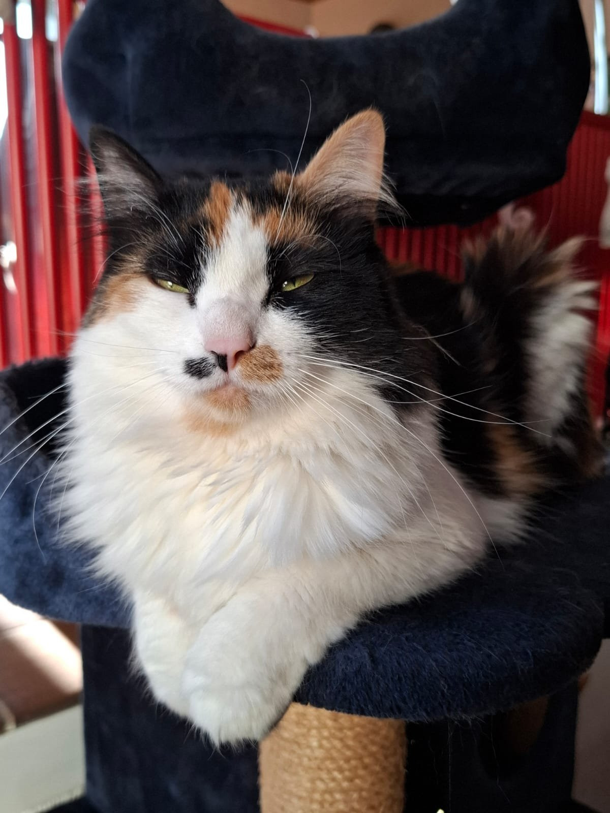 , dann ab ans Fussende, laut schnurrend. Ca. 5.00 Uhr geht sie unter Meckern wieder weg. Auf ihren Kratzbaum. Ich treffe sie dort dösend an, aber in Sekundenschnelle habe ich sie auf die Schulter, schmusen, runternehmen, wenn nötig bürsten (sie haart sehr aus), spielen, füttern, Futter wird auf die Unterlage verteilt und verschmiert. Da bleibt sie schlecht erzogen! Ein neuer unterhaltsame Tag mit ihr beginnt.