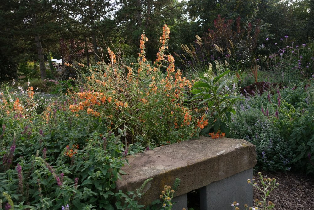 Urlaubsgärten sind auch mal interessant. Hier Poppy Cottage Garden mit Bank