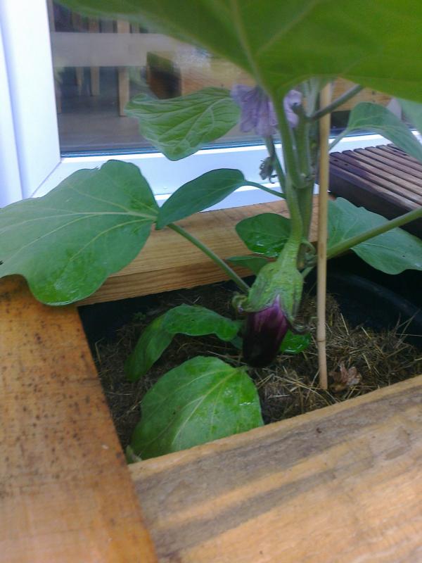 Bei diesem Wetter ist wohl wirklich nur Geduld angesagt  , fällt mir ungeheuer schwer.....meine Auberginenpflanzen sehen bis auf die zerfransten Blätter (die Ohrwürmer finden sie im jungen Stadium sehr kuschelig), sehr gut aus, haben auch viele Blüten und Fruchtansätze, aber das Wachstum der Früchte geschiet im Zeitlupentempo  ::)Die Frucht auf dem Foto bemüht sich jetzt schon seit 10 Tagen erwachsen zu werden