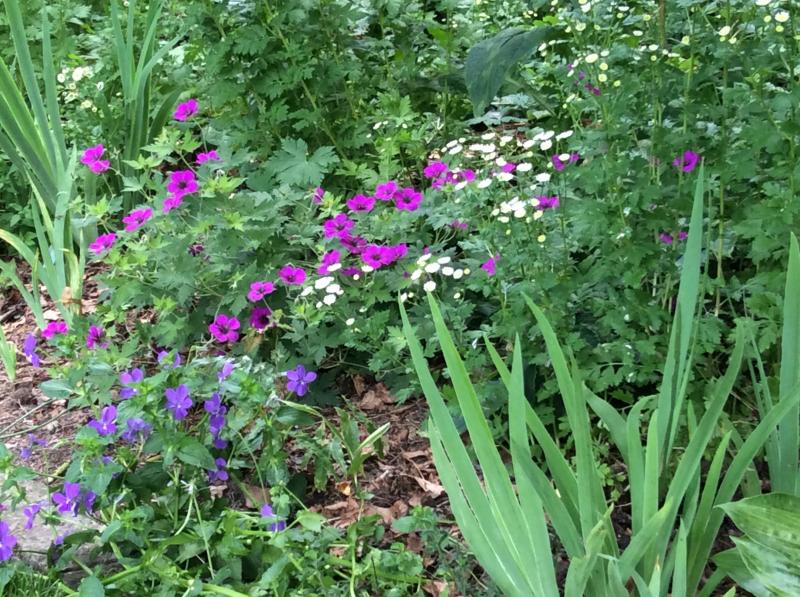 Ich habe den Sortennamen vergessen, hoffe auf ein vergrabenes Schild: eine sehr schön großblütige Auslese (Hybride?) aus Geranium psilostemon.
