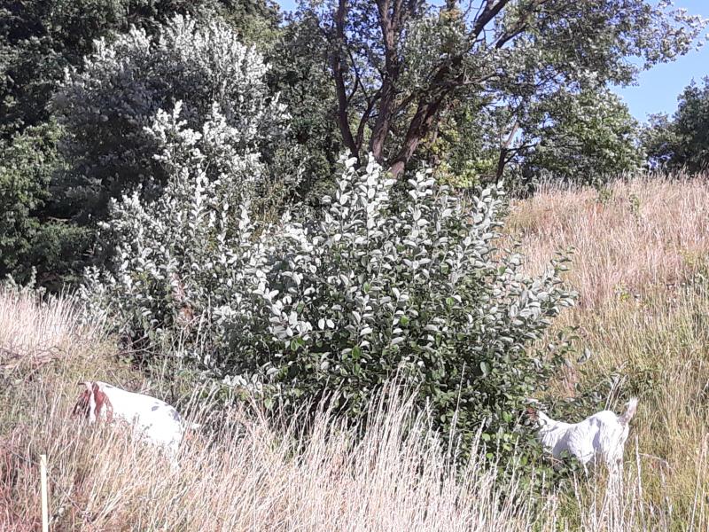 Blinkwinkelwechsel, Naturschutzgebiet Ldkr. Göttingen. Wo Freunde gestern fleißig mitgeholfen haben auch die zweite Teilfläche in die Beweidung zu nehmen. Die Bilder sprechen Bände. Wie allerorten ist auch hier der Sonnenhang schlicht verbruzzelt. Ein lachendes und ein weinendes Auge der Beweider: Immerhin können wir mit unseren Biotopflächen den Tieren weiter genug Nahrung bieten. Im NSG ist es nun der Nordhang, wo umgehend mit dem Strauchverbiss begonnen wurde