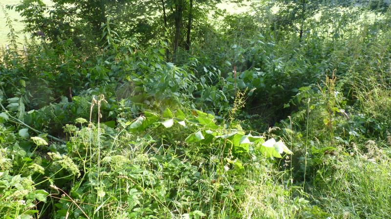 Der Knöterich steht an der anderen Stelle halb auf einer Wiese und halb im Bach. Da der Bach brav ausgezäunt ist, fressen den die Rinder dort nicht. Auf der Weide schon. Bekämpfung hier... ::)
